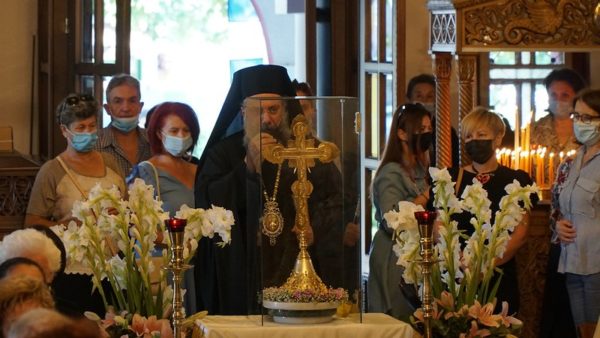 Στον Όρθρο και τη Θεία Λειτουργία την Τρίτη, 14 Σεπτεμβρίου 2021, προεξήρχε ο Θεοφιλέστατος Επίσκοπος Ευκαρπίας κ. Ιερόθεος, συλλειτουργούντος του Σεβασμιωτάτου Μητροπολίτου Τρίκκης και Σταγών κ. Χρυσοστόμου. Ο Θεοφιλέστατος στην ομιλία του αναφέρθηκε στη σπουδαία και ιερή εορτή της Υψώσεως του Τιμίου και Ζωοποιού Σταυρού.