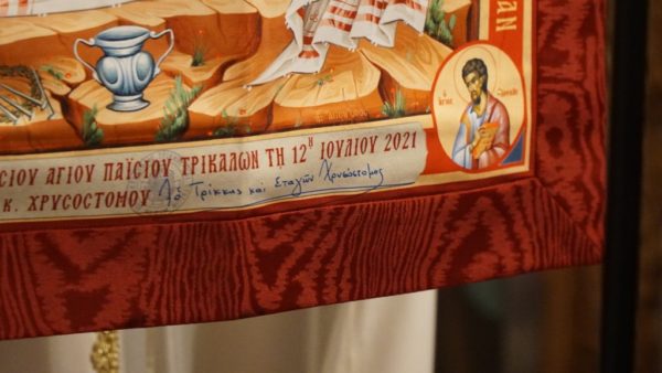 Με κάθε επισημότητα και συμφώνως με την Εκκλησιαστική Τάξη των Εγκαινίων, τηρώντας τα μέτρα κατά της πανδημίας του κορωνοϊού, τελέσθηκε το απόγευμα της Κυριακής 11 Ιουλίου 2021 ο Μέγας Πανηγυρικός Αρχιερατικός Εσπερινός των Εγκαινίων του Ιερού Παρεκκλησίου του Οσίου και Θεοφόρου Πατρός Ημών Παϊσίου του Αγιορείτου της Ενορίας Αγίου Νεκταρίου Τρικάλων.