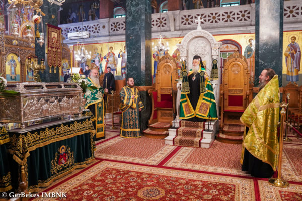 Και να είμεθα βέβαιοι ότι ο φιλόπολις άγιός μας δεν θα μας στερήσει την ευλογία του και με τις πρεσβείες του θα μας απαλλάξει από την πανδημία, για να τον τιμούμε και να τον δοξάζουμε, δοξάζοντας και δι᾽ αυτού τον φιλάνθρωπο σωτήρα μας Χριστό».