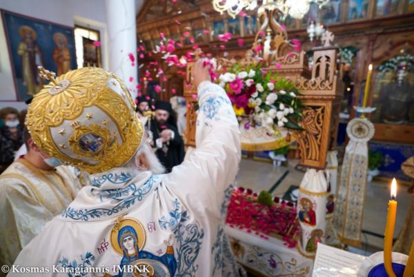 Μετά το πέρας της Θείας Λειτουργίας κλήρος και λαός έψαλλαν τα εγκώμια του Επιταφίου της Υπεραγίας Θεοτόκου.