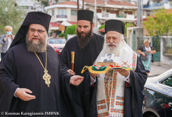 Πριν την έναρξη του Εσπερινού ο Σεβασμιώτατος Μητροπολίτης κ. Παντελεήμων μετέφερε τεμάχιο Ιερού Λειψάνου του Οσίου Αμφιλοχίου του εν Πάτμω, ευλαβή δωρεά του Αρχιερατικού Επιτρόπου Βεργίνης και προϊσταμένου του πανηγυρίζοντος Ιερού Ναού Αρχιμ. Ιερεμία Γεωργαλή.