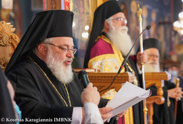 Μέ πολλή χαρά καί τιμή, Ἅγιοι Ἀρχιερεῖς, σᾶς καλωσορίζω στήν ἡρωική πόλη τῆς Ναούσης καί στήν Ἱερά Μη­τρόπολή μας καί σᾶς ἐκφράζω τίς θερμότατες εὐχαριστίες μου, γιατί, παρά τίς ὑπάρχουσες δυσκολίες, ἤλθατε γιά νά λαμπρύνετε μέ τήν παρουσία σας τίς λατρευτικές ἐκ­δηλώσεις πρός τιμήν τῶν ἁγίων Ναουσαίων Νεομαρτύρων, ἀλλά καί τίς ἑορταστικές ἐκδηλώσεις γιά τήν ἐπέτειο τοῦ ὁλοκαυτώματος τῆς Ναούσης καί τό ἱστορικό μας Συνέδριο μέ θέμα τούς ἐθνικούς ἀγῶ­νες τῶν Μακεδόνων, μέ τό ὁποῖο συμμετέχει ἡ τοπική μας Ἐκ­κλησία στίς ἑορταστικές ἐκδη­λώ­σεις τῆς Ἱερᾶς Συνόδου τῆς Ἐκκλη­σίας τῆς Ἑλλάδος.