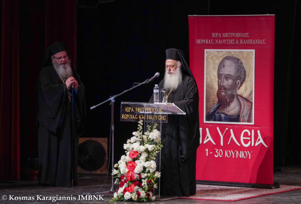 Γνωρίζω ὅτι πολλοί ἀκόμη θά ἤθελαν νά εἶναι μαζί μας σήμερα, ἀλλά λόγω τῶν συνθηκῶν καί τοῦ περιορισμένου ἀριθμοῦ ἀτόμων πού αὐτές ἐπιβάλλουν, δέν μποροῦν δυστυχῶς νά εἶναι. Τούς εὐχαριστῶ ὅλους στά πρόσωπα τῶν παρόντων ἐκπροσώπων τοῦ ἱεροῦ κλήρου, τῶν εὐλαβῶν μοναστικῶν ταγμάτων καί τοῦ εὐσεβοῦς λαοῦ, πού συνέδραμε γιά νά τιμήσει τόν τῶν Βεροιέων καί τῶν Μακεδόνων διδάσκαλο, τόν μέγα Παῦλο.