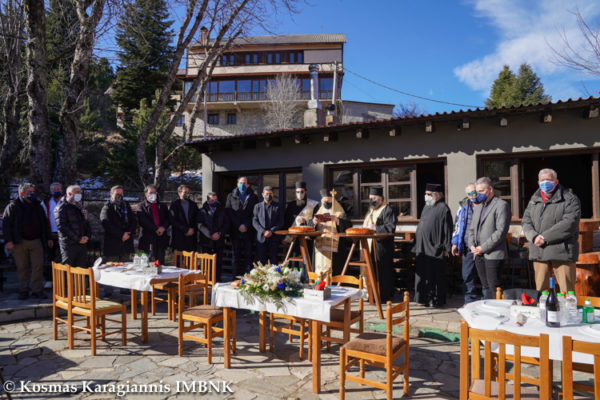 Ο Σεβασμιώτατος ευλόγησε την βασιλόπιτα του Χιονοδρομικού Κέντρου, καλωσόρισε τον Υφυπουργό και ευχήθηκε ο Όσιος Σεραφείμ, να ευλογεί και να προστατεύει όπως πάντοτε το Χιονοδρομικό Κέντρο και συντόμως με την βοήθεια του Θεού, να ξεπεραστεί ο μεγάλος πειρασμός και να επανέλθει στην κανονική λειτουργία του.