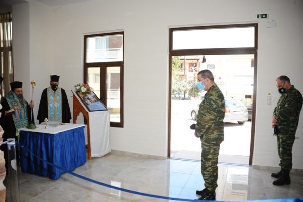 Εν συνεχεία μετά από πρόσκληση του κ. Αρχηγού ο Σεβ. Χίου μετέβη και ετέλεσε τον Αγιασμό των εγκαινίων του νέου χώρου της Λέσχης Αξιωματικών της 96ης ΑΔΤΕ.