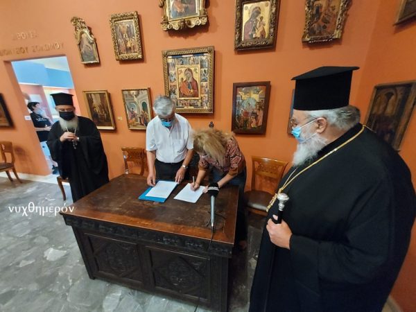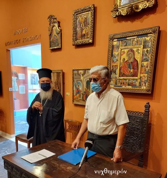 Σύντομες προσλαλιές έκαναν ο Πρόεδρος κ. Διονύσης Σέρρας και ο Σεβ. Δωδώνης, οι οποίοι εξέφρασαν θερμές ευχαριστίες και την ευγνωμοσύνη της Ζακύνθου προς τον ευγενικό Χορηγό κ. Αθανάσιο Μαρτίνο. Τέλος, υπογράφτηκε το σχετικό πρωτόκολλο παράδοσης και παραλαβής.