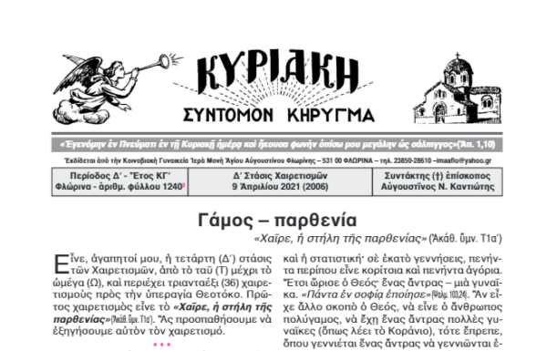 Αυγουστίνος Καντιώτης: «Γάμος – Παρθενία»