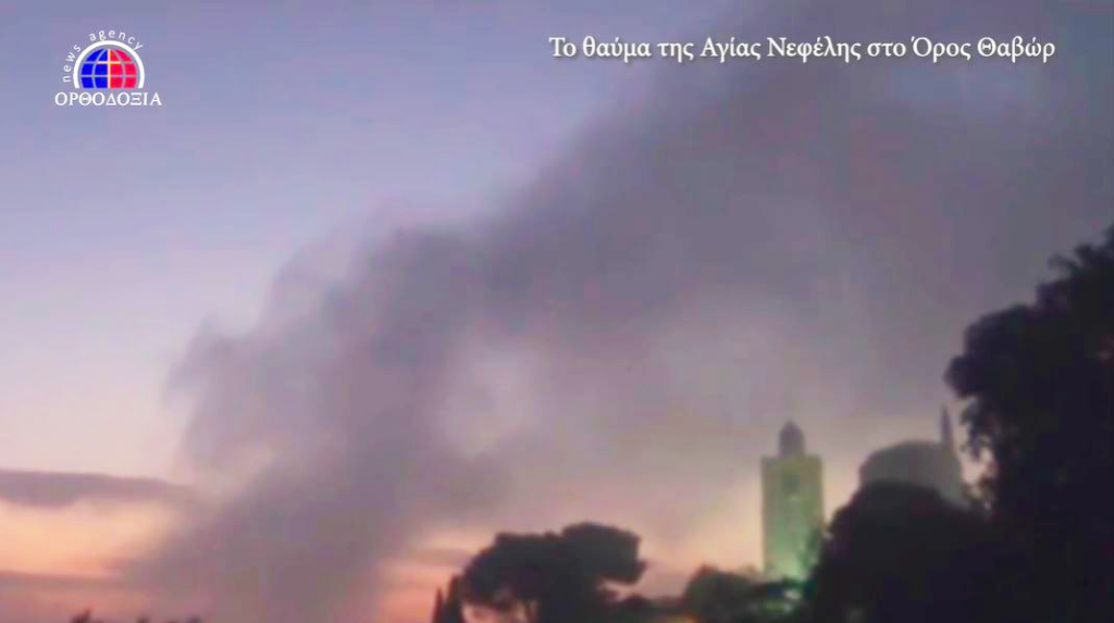Ο πατήρ Ιλαρίων αναφέρεται στο γεγονός της Μεταμορφώσεως, στην ιστορία και πορεία μέσα στους αιώνες της Ιεράς Μονής Θαβώρ, ενός εκ των ιερών προσκυνημάτων των Αγίων Τόπων. Ιδιαίτερη αναφορά κάνει στο επαναλαμβανόμενο θαύμα που λαμβάνει χώρα κάθε χρόνο στις 6 Αυγούστου, κατά την Ιερά Αγρυπνία, οπότε μπροστά στα μάτια χιλιάδων πιστών, κατεβαίνει πάνω από το ιερό βουνό η Αγία Νεφέλη κι ένα εξαίσιο άρωμα σαν λιβάνι απλώνεται στον αέρα. Μάλιστα κάποιες φορές το σύννεφο είναι τόσο πυκνό που δεν μπορείς να διακρίνεις τίποτα σε απόσταση δύο μέτρων.