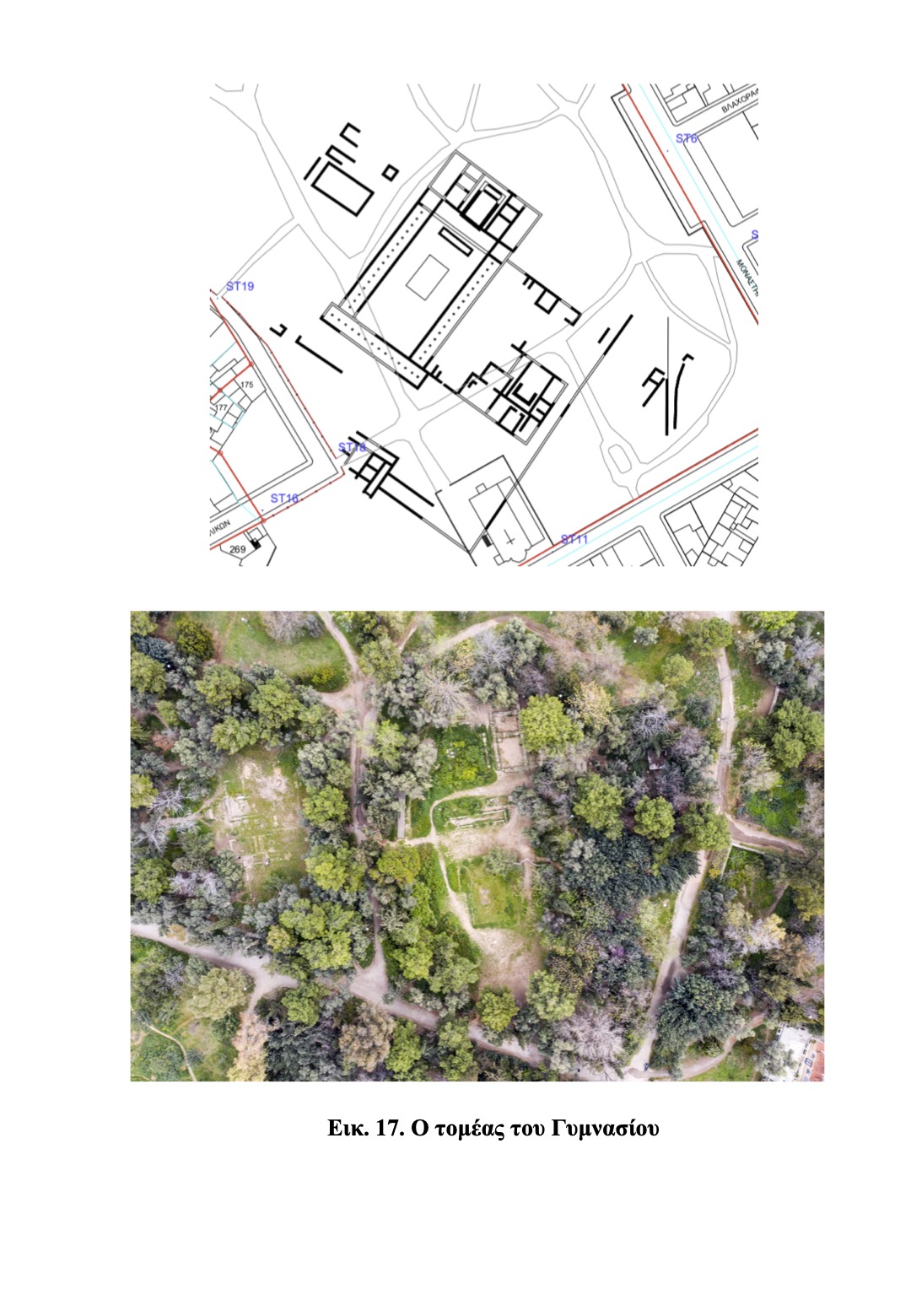 Συγκεκριμένα προτείνεται σε πρώτη φάση, η ενοποίηση των τριών από τα έξι υφιστάμενα σκάμματα στον Τομέα του Γυμνασίου, ώστε να αποκαλυφθεί το συνολικό περίγραμμα του μνημείου με την αποκάλυψη ενδεχομένως νέων αρχιτεκτονικών καταλοίπων και να αποκατασταθεί η σχέση του με τις γύρω λουτρικές εγκαταστάσεις. Σε δεύτερη φάση προτείνεται περαιτέρω ενοποίηση των λοιπών σκαμμάτων για την αποκατάσταση της σχέσης του Γυμνασίου με τα ρωμαϊκά κτίρια και τους αρχαίους τάφους που έχουν εντοπιστεί προς τα ανατολικά και νότια αντίστοιχα. Με την ολοκλήρωση και της φάσης αυτής θα αποκατασταθεί η εικόνα του συγκροτήματος του Γυμνασίου με την παλαίστρα και θα αναδειχθεί το σύνολο των ορατών μνημείων και των νέων που ενδεχομένως θα βρεθούν. Προτείνεται επίσης η δημιουργία πλατώματος στην προέκταση της οδού Τιμαίου, που θα λειτουργεί ως συνδετικός κρίκος μεταξύ του ιστού της σύγχρονης πόλης και των αρχαίων. Αντίστοιχες ακριβώς είναι οι εργασίες που προβλέπονται στον Τομέα του Περιστυλίου, ώστε να αποκαλυφθεί πλήρως η κάτοψη του μνημείου των κλασικών χρόνων και των αρχαίων καταλοίπων γύρω του.