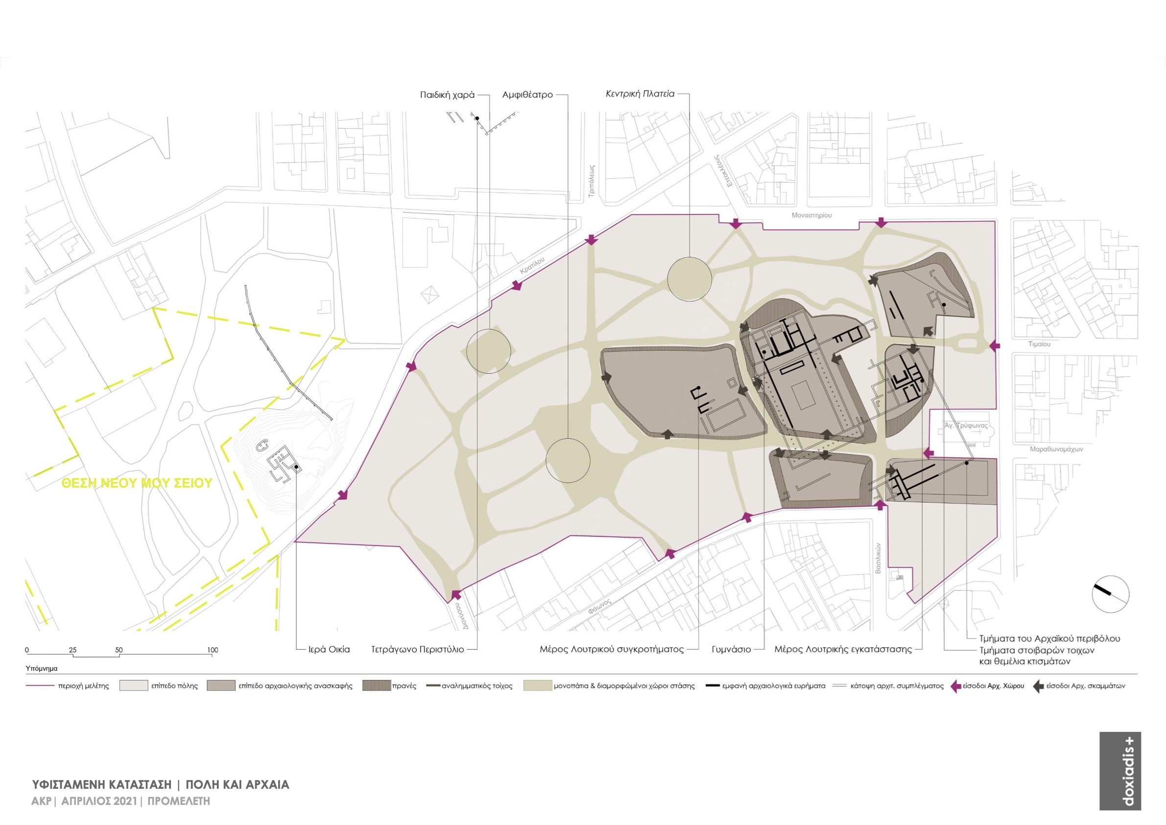 – Στη βελτίωση της προσβασιμότητας στα μνημεία και τη δημιουργία συνέχειας μεταξύ του επιπέδου με τις αρχαιότητες και αυτού της σύγχρονης πόλης με το πάρκο.