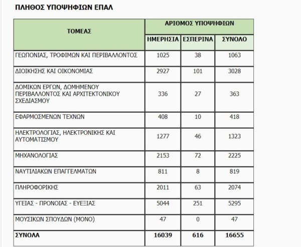 Επισημαίνεται ότι το πλήθος των υποψηφίων προκύπτει από μία τουλάχιστον συμμετοχή σε πανελλαδικά εξεταζόμενο μάθημα.