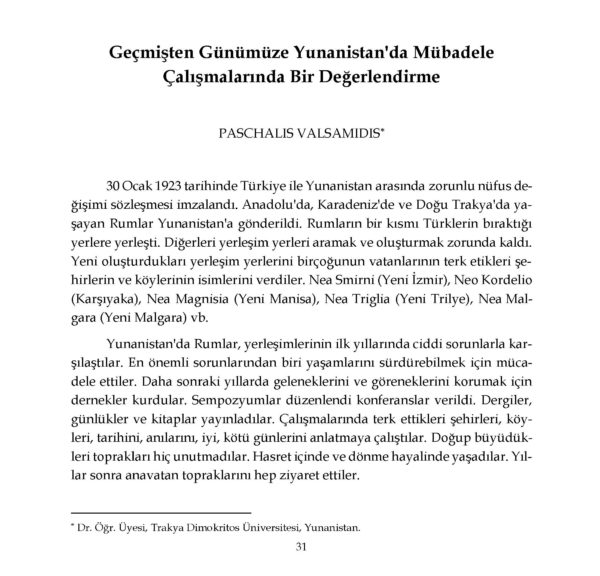 Άρθρα Ελλήνων επιστημόνων στην τουρκική έκδοση «Η Ανταλλαγή των Τουρκο/Ελληνικών πληθυσμών»