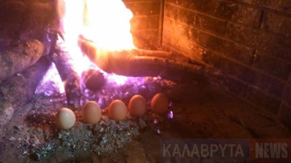 Έτσι, κάθε χρόνο, οι οικογένειες μαζεύονται γύρω από το τζάκι και τοποθετούν στη χόβολη ένα αυγό για κάθε μέλος της οικογένειας. Τραβούσαν με τη μάσια αρκετή στάχτη ανακατεμένη με λίγα κάρβουνα κι έβαζαν ένα-ένα τ΄αυγά στη σειρά για όλα τα μέλη της οικογένειας για να ψηθούν και περιµένουν να δουν ποιανού το αυγό θα «ιδρώσει» πρώτο. Όποιου το αυγό «ίδρωνε» λέγανε ότι είναι «δουλευταράς» ενώ εκείνου που «έσκαγε» σήμαινε ότι «σκάσανε οι εχθροί του από το κακό τους».