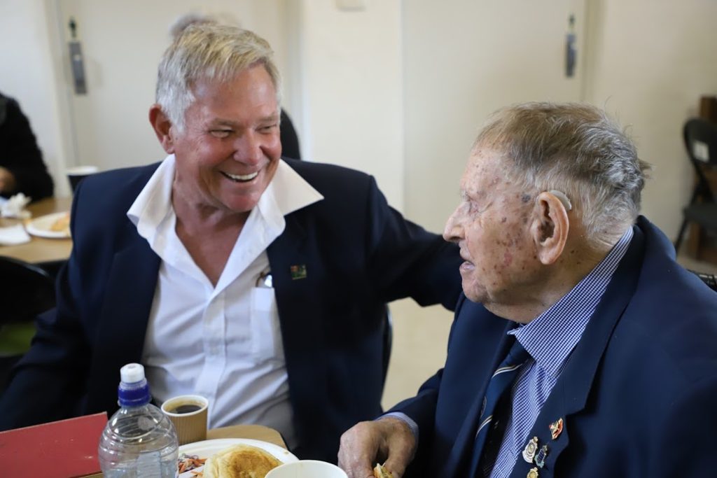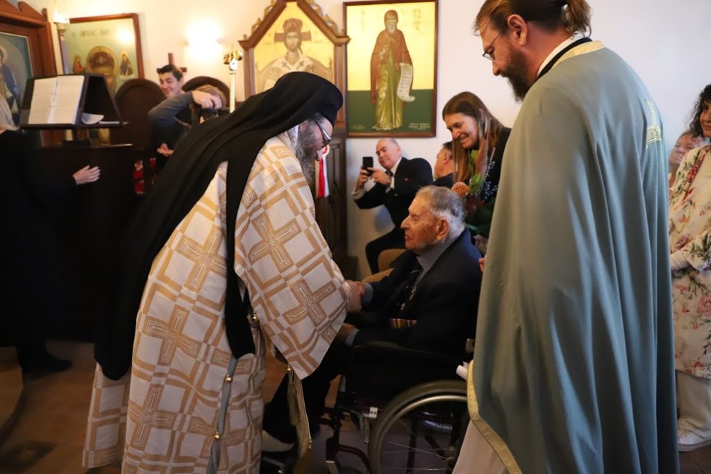 Σημαντική και συγκινητική ήταν η παρουσία του κ. Norm Eaton, 2/11th Battalion, Βετεράνου Πολεμιστή της Μάχης της Κρήτης. Ο κ. Eaton είναι 102 ετών και ακόμα συμμετέχει ενεργά και με ολόψυχο ενθουσιασμό σε πολλές εκδηλώσεις. Ο Θεοφιλέστατος ευχαρίστησε, εκ μέρους του Σεβασμιωτάτου Αρχιεπισκόπου Αυστραλίας κ.κ. Μακαρίου, ιδιαίτερα τον παλαίμαχο κ. Eaton, ο οποίος πάντα θυμάται με ξεχωριστή χαρά ότι είχε την τιμή να γνωρίσει προσωπικά τον Σεβασμιώτατο κ.κ. Μακάριο κατά την επίσκεψή του στο Bunbury το 2019.