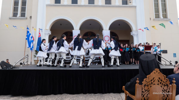 Μετά από την Απόλυση της Θείας Λειτουργίας, στον σημαιοστολισμένο αύλειο χώρο της εκκλησίας εκτυλίχθηκε το πλούσιο πολιτιστικό πρόγραμμα της εκδήλωσης, το οποίο περιελάμβανε απαγγελίες ποιημάτων, εμπνευσμένων από τον Αγώνα του ’21 και την Εθνική Παλιγγενεσία, καθώς επίσης παρουσίαση επετειακών τραγουδιών και παραδοσιακών ελληνικών χορών. Σε φόντο γαλάζιο και λευκό, με διάχυτα αισθήματα ενθουσιασμού και υπερηφάνειας, τα παιδιά και οι νέοι της Ομογένειας απέδειξαν πως γνωρίζουν και τιμούν τους αγώνες των προγόνων τους, την ιστορία, τις αξίες και τις παραδόσεις του Γένους τους.