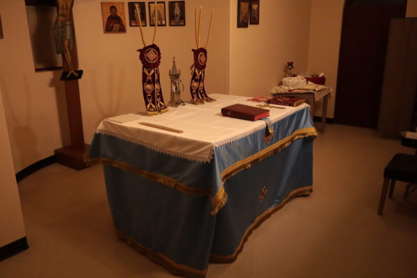 – Καινούρια καλύμματα της Αγίας Τραπέζης και λειτουργικά είδη δωρηθέντα από ενορίες της Αδελαΐδος.