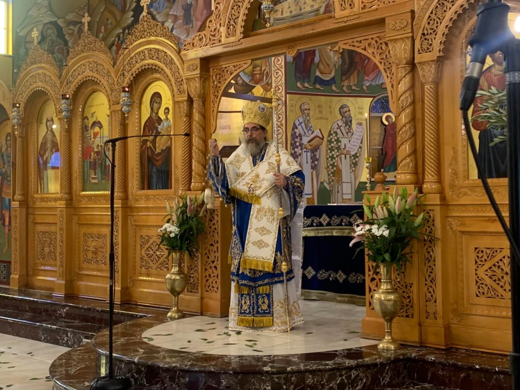 Στο κήρυγμά του, ο Επίσκοπος Σωζοπόλεως μετέφερε τις ευχές και την ευλογία του Σεβασμιωτάτου Αρχιεπισκόπου Αυστραλίας κ. Μακαρίου, ενώ ζήτησε από τους πιστούς να προσευχηθούν για την ταχεία και πλήρη ανάρρωση του Σεβασμιωτάτου από την Covid-19.