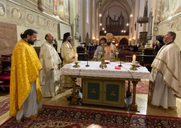 Στη Θεία Λειτουργία συμμετείχαν ο Θεοφιλέστατος Επίσκοπος Απαμείας κ. Παΐσιος, ιερείς από την Εξαρχία Ουγγαρίας και ο Αρχιδιάκονος Μάξιμος Rugyko, που συνόδευσε τον Σεβασμιώτατο από τη Βιέννη.