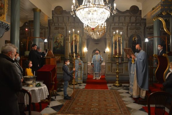 Ο Σεβασμιώτατος ετέλεσε τον Μέγα Αγιασμό των Θεοφανείων παρουσία ικανού αριθμού πιστών, τηρουμένων των υγειονομικών μέτρων λόγω της πανδημίας.