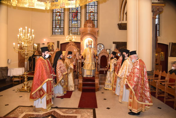 Στο τέλος του Εσπερινού ο Σεβασμιώτατος στην ομιλία του δόξασε τον Θεό για την χρονιά που πέρασε και κυρίως διότι επέτρεψε να τον λατρεύουμε και να τον δοξάζουμε σε ανοιχτές Εκκλησίες, κάτι το οποίο δεν είναι πάντοτε και παντού αυτονόητο. Ιδιαιτέρως στις χώρες στις οποίες ζούμε υπάρχουν πολλές δυνατότητες αλλά οι άνθρωποι, ακόμα και οι ορθόδοξοι, αδιαφορούν για τον Θεό και την ζωή της Εκκλησίας, χάνοντας έτσι «το κοινό νήμα της ζωής μας, αυτό της εν Χριστώ ζωής, εντός της Εκκλησίας». Έτσι, κάλεσε τους πιστούς να εντείνουν τον πνευματικό τους αγώνα εμπνέοντας και τους λοιπούς αδελφούς μας στην εκκλησιαστική ζωή.