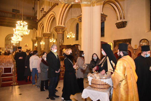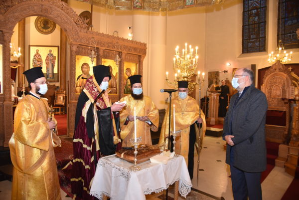 Εσπερινός και η τελετή της κοπής της Βασιλόπιτας της Ιεράς Μητροπόλεως Βελγίου τελέστηκαν στον Ιερό Μητροπολιτικό Ναό των Παμμεγίστων Ταξιαρχών Βρυξελλών την Κυριακή 9 Ιανουαρίου 2022.