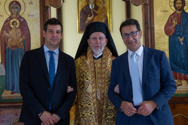 Ακολούθως, ο Σεβασμιώτατος, μαζί με τους εφημερίους και τα μέλη του Εκκλησιαστικού Συμβουλίου, είχαν συνάντηση με τα συνεργεία αποκαταστάσεως και πληροφορήθηκαν για την πρόοδο των έργων στο ναό και την αίθουσα δεξιώσεων.