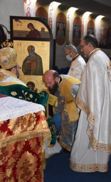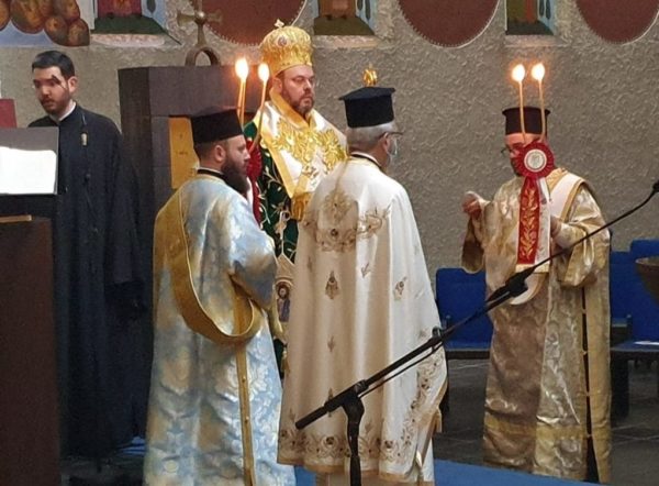 Η Θεία Λειτουργία ετελέσθη σύμφωνα με τα επιβληθένα από τις Αρχές του Καντονίου της Γενεύης υγειονομικά προστατευτικά μέτρα και με την συμμετοχή μόνο 50 πιστών. Κατά την πανηγυρική αυτή μέρα, ο άγιος Ελβετίας προέβη στην εις Πρεσβύτερον χειροτονία του μέχρι τούδε ταπεινού και αφοσιωμένου Διακόνου του, Ιερολογιωτάτου κ. Δαμασκηνού Κασσώτη, στον οποίο, προ της Απολύσεως, απένειμε και το Οφφίκιο του Αρχιμανδρίτου.