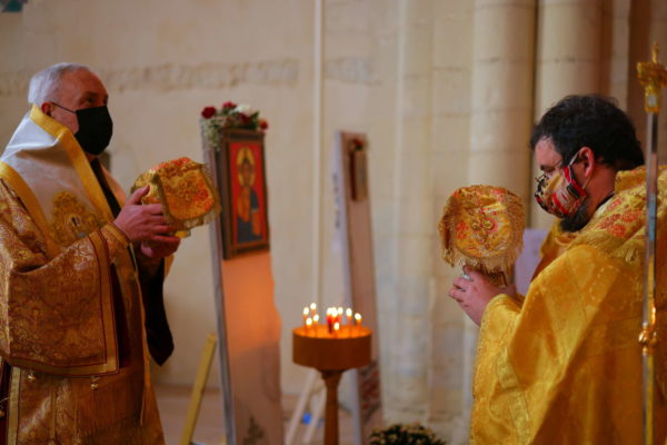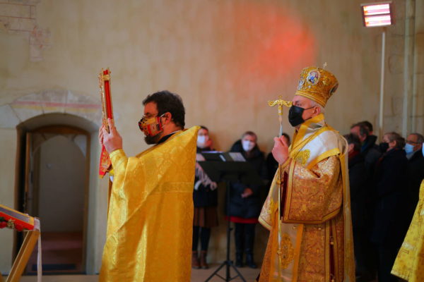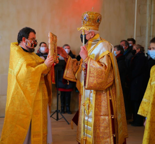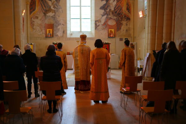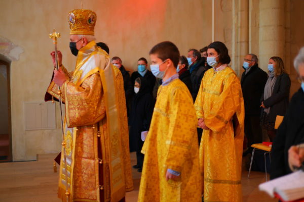 Στον πανηγυρίζοντα Ι. Ναό του Αγίου Νεομάρτυρος Δημητρίου (Κλεπινίν) στην πόλη Angers μετέβη σήμερα Κυριακή, 14 Φεβρουαρίου 2021, ο Σεβασμιώτατος Μητροπολίτης Γαλλίας κ. Εμμανουήλ. Οι πιστοί της ενορίας ακολουθούν το Σλαβονικό Τυπικό και το Ιουλιανό Ημερολόγιο.
