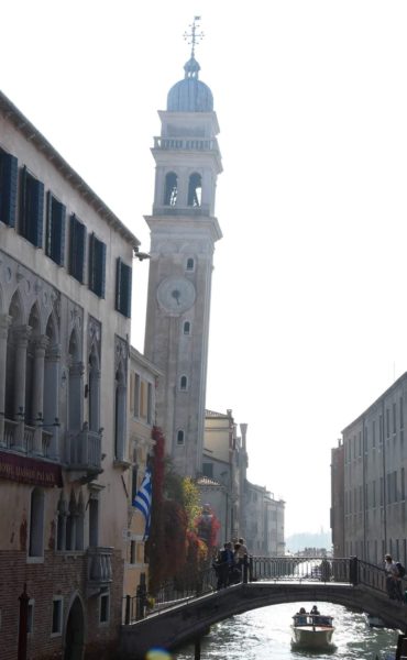 Το καμπαναριό του Αγίου Γεωργίου των Ελλήνων θα αρχίσει να κτίζεται από το 1589, το έτος του θανάτου του Σαμαριάρη, και θα ολοκληρωθεί το 1609, έργο του Bernardino Ongarin, του ίδιου αρχιτέκτονα του κωδωνοστασίου του Αγίου Φρανγκίσκου (San Francesco della Vigna). Δεν θα φτιαχτεί με πλίνθους ή σύμφωνα με την αρχιτεκτονική του Αγίου Ιωάννη Bragora, όπως ορίζει η διαθήκη, αλλά σε πέτρα της Ίστριας. Ο Σαμαριάρης θα ταφεί, όμως, στην εκκλησία των Ελλήνων.