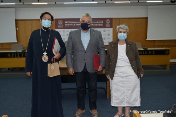 Απευθυνόμενος στον Σεβασμιώτατο Μητροπολίτη, ο Πρύτανης του ΑΠΘ επισήμανε ότι «είναι τιμή για εμάς στη θέση που είστε να μιλάτε την ελληνική γλώσσα που σημαίνει ότι, στα μέρη όπου διακονείτε, μεταφέρεται όχι μόνο η ελληνική γλώσσα αλλά και ο ελληνικός πολιτισμός».