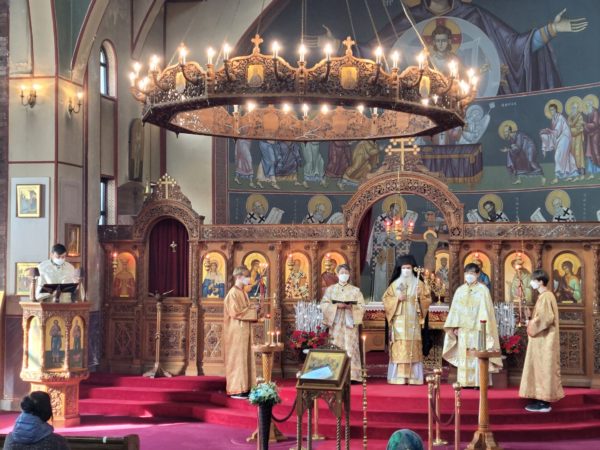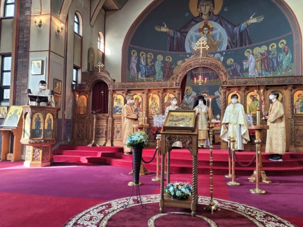 Ο Σεβασμιώτατος Μητροπολίτης Κορέας και Έξαρχος Ιαπωνίας κ. Αμβρόσιος προέστη της Θείας Λειτουργίας στον Καθεδρικό Ιερό Ναό του Αγίου Νικολάου Σεούλ, πλαισιούμενος από τους ιερείς π. Ρωμανό Kavchak, τον π. Αντώνιο Lim και τον διάκονο Γιοχάν Park.