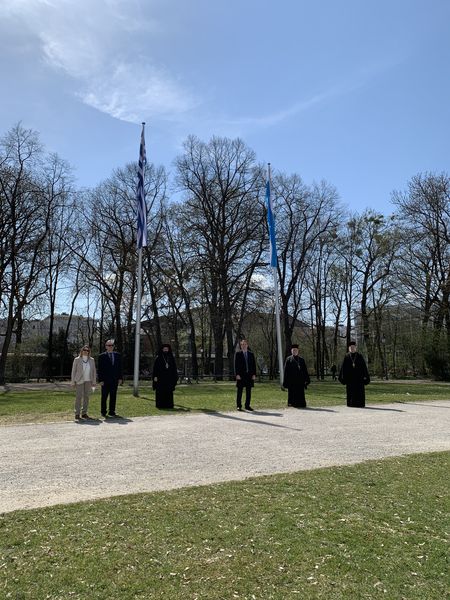 Στην τελετή παρέστησαν ο Γενικός Πρόξενος Μονάχου κ. Βασίλειος Γκουλούσης και η αρχαιολόγος-φιλόλογος κ. Μαρία Λιάνου. Λόγω των προστατευτικών μέτρων της Βαυαρικής Πολιτείας για την προστασία από τον κορωνοϊό δεν κατέστη δυνατό να παραστούν περισσότερα μέλη της Παροικίας στην τελετή.