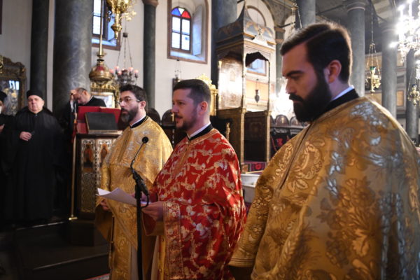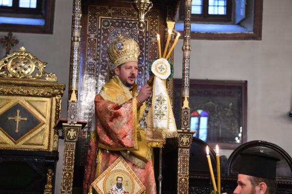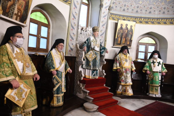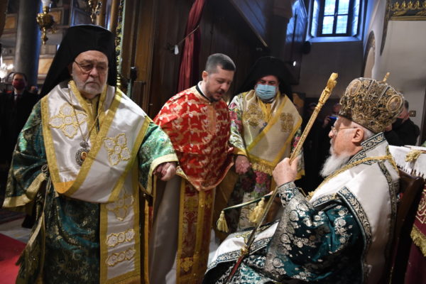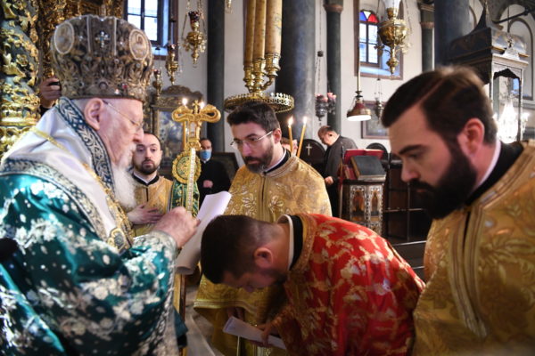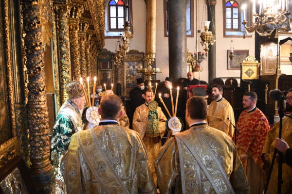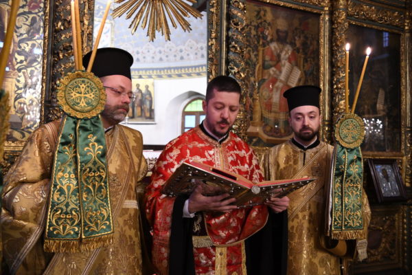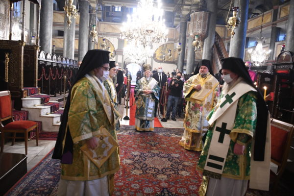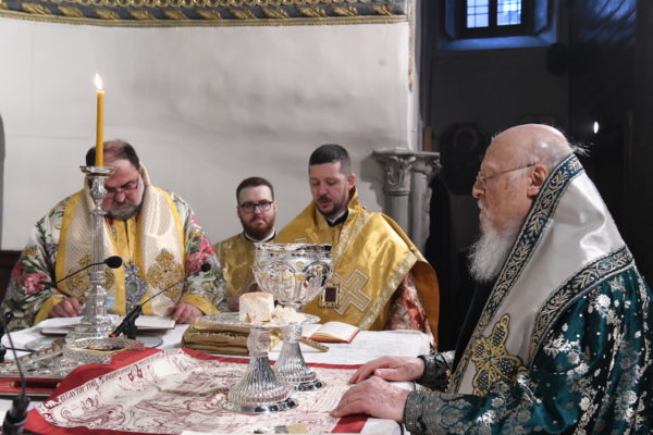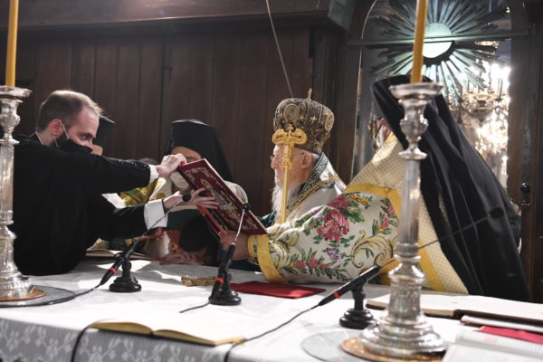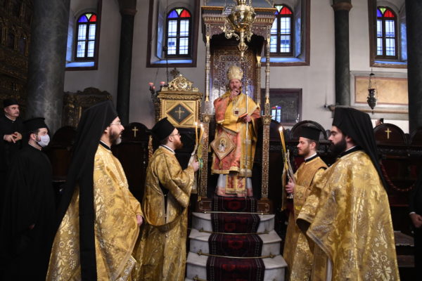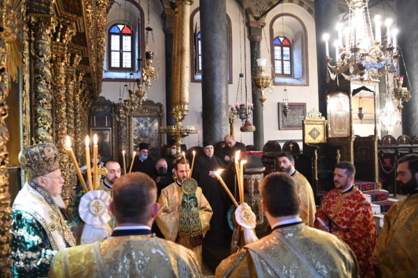 Της Θείας Λειτουργίας, που τελέστηκε στον Πάνσεπτο Πατριαρχικό Ναό, προεξήρχε ο Οικουμενικός Πατριάρχης κ.κ. Βαρθολομαίος, συμπαραστατούμενος από τους Σεβ. Αρχιερείς, Μύρων κ. Χρυσόστομο, Ανθηδώνος κ. Νεκτάριο, Επίτροπο του Παναγίου Τάφου στην Πόλη, Ικονίου κ. Θεόληπτο και Ίμβρου και Τενέδου κ. Κύριλλο.