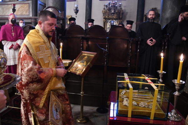 Παρέστησαν συμπροσευχόμενοι οι Σεβ. Μητροπολίτες Γέρων Δέρκων κ. Απόστολος, Γέρων Πριγκηποννήσων κ. Δημήτριος, Φιλαδελφείας κ. Μελίτων, Καλλιουπόλεως και Μαδύτου κ. Στέφανος, Σηλυβρίας κ. Μάξιμος και Σμύρνης κ. Βαρθολομαίος, οι Θεοφιλ. Επίσκοποι Αλικαρνασσού κ. Αδριανός, Τράλλεων κ. Βενιαμίν και Αραβισσού κ. Κασσιανός, ο Σεβ. Αρχιεπίσκοπος κ. Paul Fitzpatrick Russell, Νούντσιος του Βατικανού στην Τουρκία, o Γενικός Πρόξενος της Ουκρανίας στην Πόλη, Εντιμ. κ. Oleksandr Gaman, μαζί με στελέχη του Προξενείου, Άρχοντες Οφφικιάλιοι της Αγίας του Χριστού Μεγάλης Εκκλησίας και πλήθος πιστών από την Πόλη.