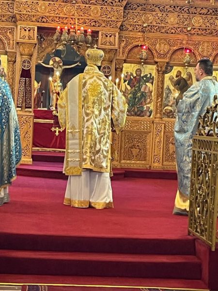 Της ιεράς πανηγύρεως προεξήρχε ο Θεοφιλέστατος Επίσκοπος Κλαυδιουπόλεως κ. Ιάκωβος, συμπαραστατούμενος υπό του Πρωτοσυγκέλλου Αρχιμ. κ. Νικοδήμου Αναγνωστόπουλου, του ιερατικώς Προϊσταμένου του Ναού Αρχιμ. κ. Αποστόλου Τριφύλλη και του Πρεσβυτέρου π. Βίκτωρος Κτωράκη.