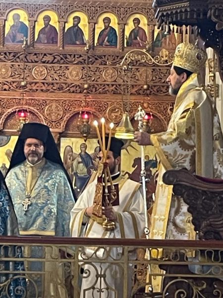 Ο Θεοφιλέστατος μετέφερε στο εκκλησίασμα τις ευχές του Σεβ. Αρχιεπισκόπου Θυατείρων και Μεγάλης Βρεταννίας κ. Νικήτα, ευχόμενος καλή και ευλογημένη χρονιά, απαλλαγμένη σύντομα από την μεγάλη δοκιμασία της πανδημίας.
