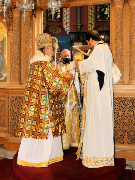 Στην Θεία Λειτουργία προεξήρχε ο Σεβασμιώτατος Αρχιεπίσκοπος Θυατείρων και Μεγάλης Βρεταννίας κ. Νικήτας, και συλλειτούργησαν μαζί του ο Σεβασμιώτατος Μητροπολίτης κ. Σιλουανός (Πατριαρχείο Αντιοχείας) και ο Αρχιεπίσκοπος Ζήνων (Πατριαρχείο Γεωργίας).