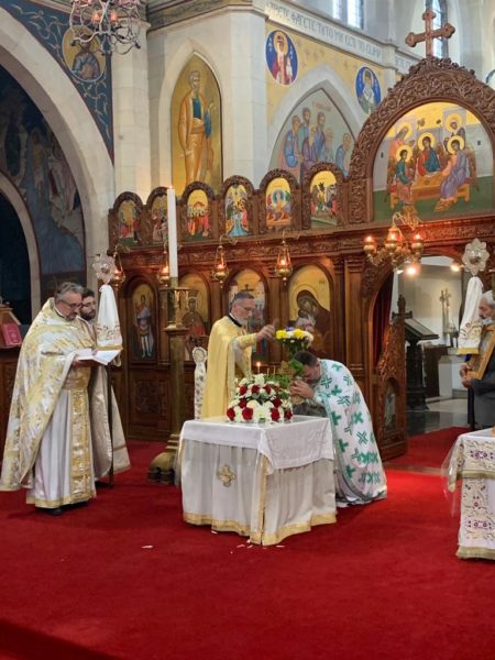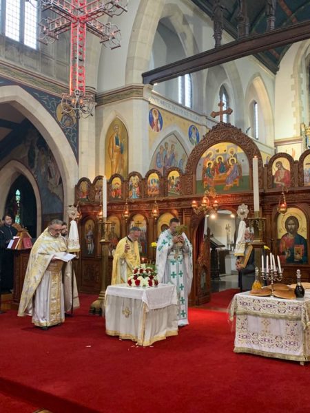 Ο Θεοφιλέστατος Επίσκοπος Κλαυδιουπόλεως κ. Ιάκωβος, εκπροσωπώντας τον Σεβασμιώτατο Αρχιεπίσκοπο Θυατείρων και Μεγάλης Βρετανίας κ. Νικήτα, χοροστάτησε κατά τον Όρθρο και τέλεσε τη Θεία Λειτουργία στον πανηγυρίζοντα Καθεδρικό Ναού του Τιμίου Σταυρού και Αρχαγγέλου Μιχαήλ στο Golders Green Β. Λονδίνου, χθες, ανήμερα της εορτής, 14 Σεπτεμβρίου.