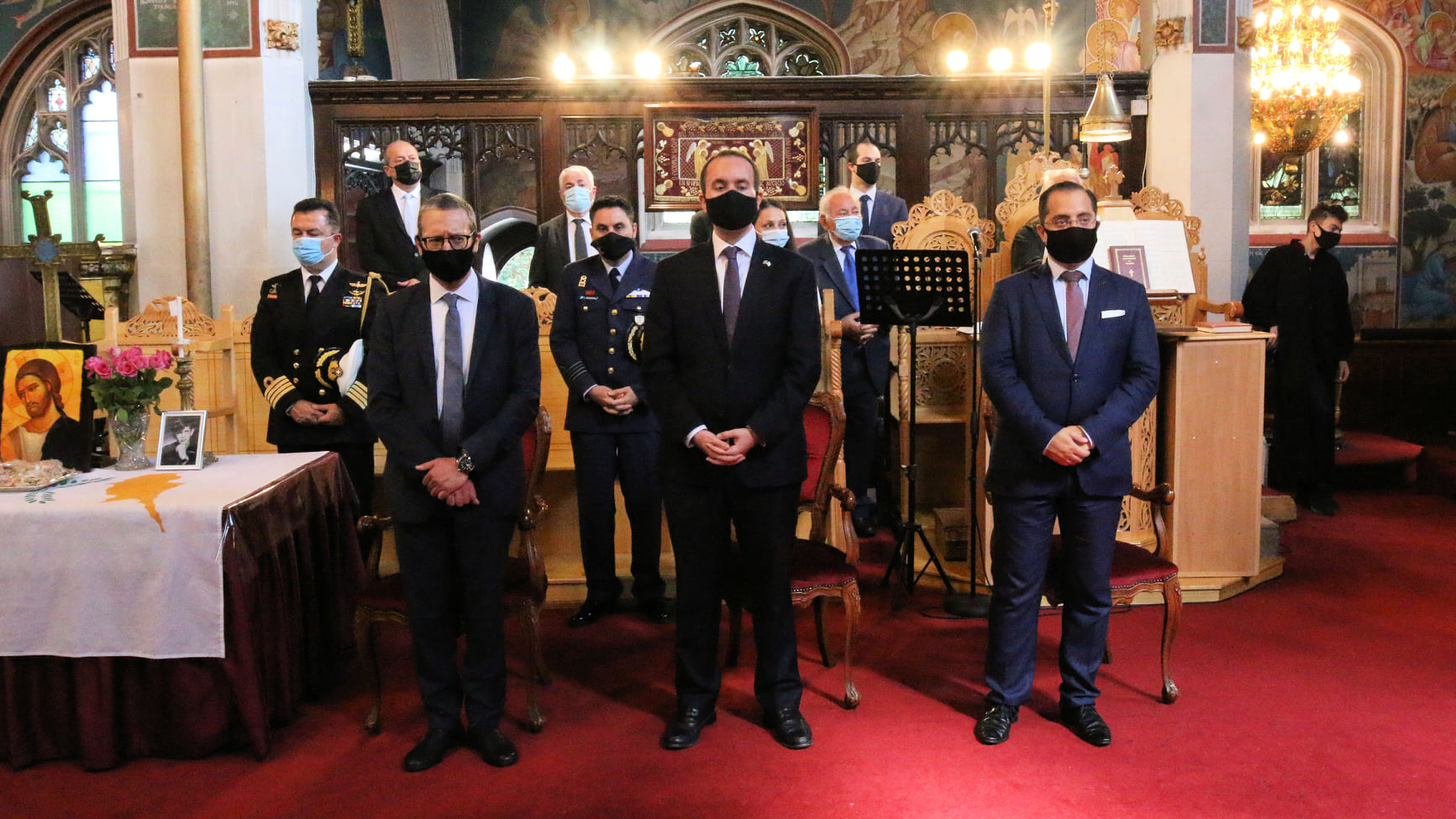 Ακολουθήσε η τέλεση του ετησίου μνημοσύνου υπέρ αναπαύσεως των ψυχών των πεσόντων στα τραγικά γεγονότα της Τουρκικής εισβολής του 1974 στην Κύπρο και της συνεχιζόμενης παράνομης κατοχής της Μεγαλονήσου.