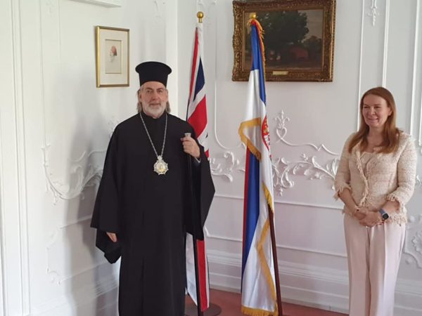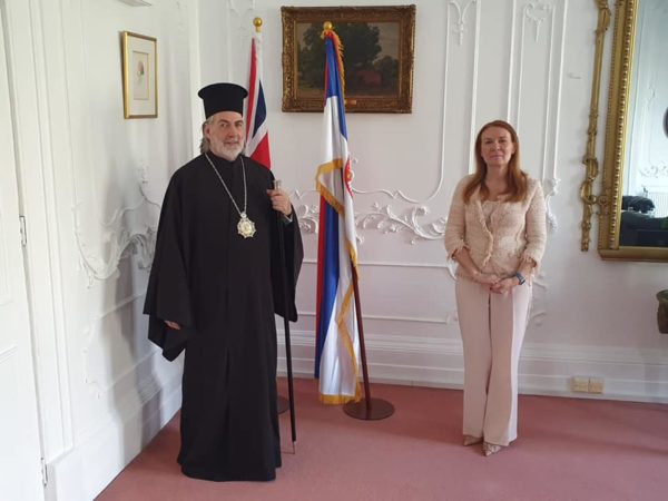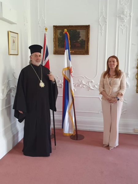 Κατόπιν προσκλήσεως της Εξοχωτάτου Πρέσβεως της Σερβίας κ. Aleksandra Joksimović, ο Σεβασμιώτατος Αρχιεπίσκοπος Θυατείρων και Μεγάλης Βρεταννίας κ. Νικήτας πραγματοποίησε σήμερα εθιμοτυπική επίσκεψη στην Πρεσβευτική Κατοικία στο κεντρικό Λονδίνο.