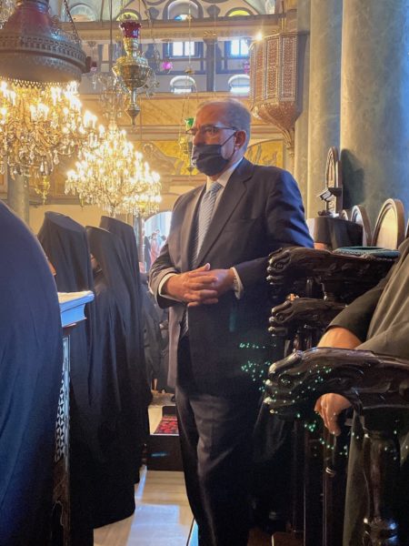 “Πριν από 48 χρόνια χρόνια, στις 26 Οκτωβρίου 1973, ο πρύτανης της Ιεραρχίας του Οικουμενικού Πατριαρχείου, Μητροπολίτης Γέρων Χαλκηδόνος Μελίτων, προσφωνώντας, την ημέρα των ονομαστηρίων του, τον άμεσο προκάτοχό σας Σεπτό Πατριάρχη Δημήτριο, περιέγραψε κατά τρόπο περιεκτικό το νόημα της εορτής του “Πατριάρχη”. Έλεγε ο Μακαριστός Μελίτων: “Η εορτή αύτη, καίτοι κατ’ αρχήν προσωπική […] αποβαίνει εορτή πάγκοινος εν τη Εκκλησία, διότι ο Πατριάρχης […] ανήκει εις όλους και όλοι ανήκομεν εις τον Πατριάρχην””, είπε, μεταξύ άλλων, ο Υφυπουργός Εξωτερικών και πρόσθεσε: “Πράγματι, η χαρμόσυνη αυτή ημέρα είναι μια ευκαιρία συνάντησης του “πατρός” με τα ανά την οικουμένη “τέκνα” του, είτε σωματικώς είτε προσευχητικώς, καθώς και σήμερα είναι πολλοί εκείνοι που βρίσκονται, με τον έναν ή τον άλλο τρόπο, πλησίον της Παναγιότητάς σας. Πολλοί δε από αυτούς δεν είναι καν Ορθόδοξοι, μπορεί δε να μην είναι καν χριστιανοί. Ωστόσο εύχονται υπέρ υγείας και μακροημερεύσεως Υμών. Και αυτό, επιτρέψτε μου να διαπιστώσω, αποτελεί ένα από τα κύρια επιτεύγματα της πολυετούς πατριαρχίας σας. Το ότι δηλαδή η προσωπικότητά σας, είτε μέσω των λόγων σας είτε μέσω των έργων σας, έχει εμπνεύσει και κυρίως ενώσει ετερόκλητους ανθρώπους”.