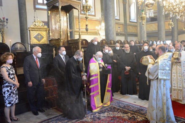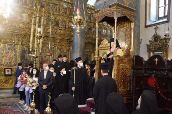 Εκκλησιάστηκαν Ιεράρχες του Οικουμενικού Θρόνου, Αντιπροσωπείες των Αυτοκεφάλων Εκκλησιών Κύπρου και Ουκρανίας, υπό τους Σεβ. Μητροπολίτες Κωνσταντίας και Αμμοχώστου κ. Βασίλειο και Ιβάνο-Φρανκίβσκ και Γαλικίας κ. Ιωάσαφ αντιστοίχως, Ηγούμενοι από το Άγιον Όρος, κληρικοί, μοναχοί και μοναχές, Άρχοντες Οφφικιάλιοι του Οικουμενικού Θρόνου, ο Υφυπουργός Εξωτερικών της Ελλάδος Εξοχ. κ. Κωνσταντίνος Βλάσης, ο Πρέσβης της Ελλάδος στην Άγκυρα Εξοχ. κ. Μιχαήλ-Χρήστος Διάμεσης, ο πρώην Υφυπουργός κ. Αντώνης Διαματάρης, οι Γενικοί Πρόξενοι της Ελλάδος και της Ουκρανίας στην Πόλη Ευγεν. κ. Γεωργία Σουλτανοπούλου και Εντιμ. κ. Oleksandr Gaman, Κοινοτικοί παράγοντες, μαθητές και μαθήτριες της Πατριαρχικής Μεγάλης του Γένους Σχολής, μαζί με τον Διευθυντή και καθηγητές τους, πιστοί από την Πόλη και προσκυνητές από το εξωτερικό.