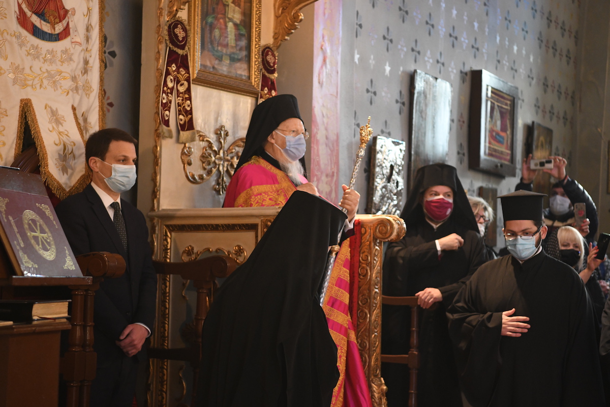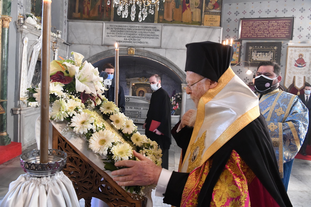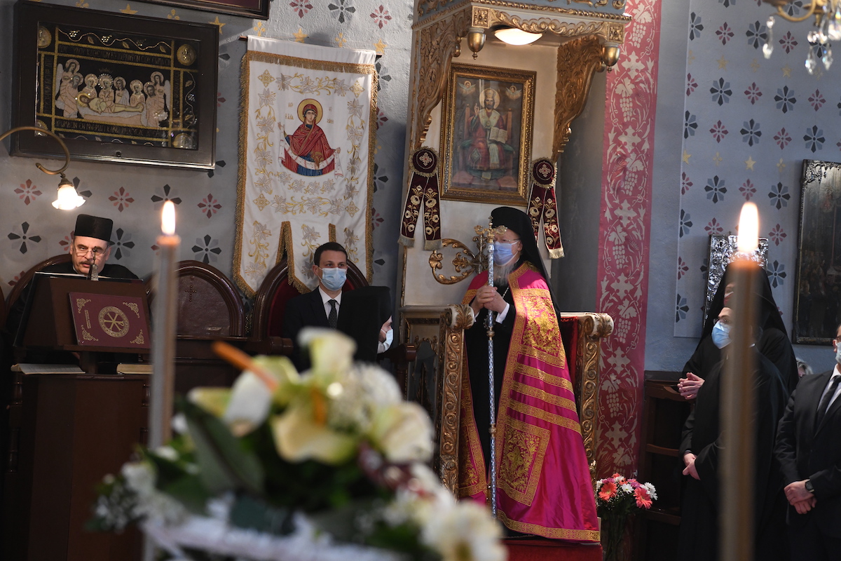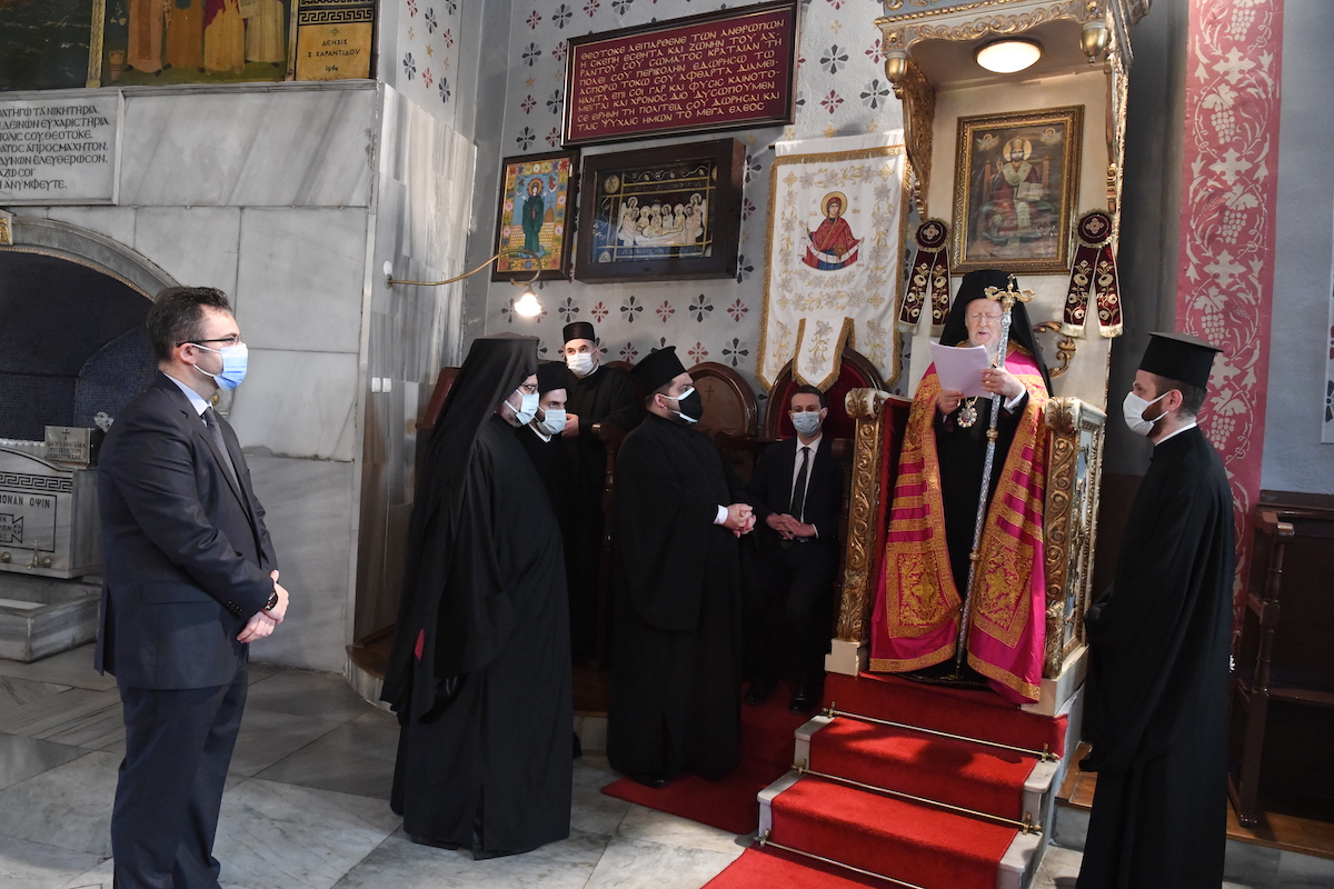 Η Α.Θ. Παναγιότης ο Οικουμενικός Πατριάρχης κ.κ. Βαρθολομαίος, χοροστάτησε σήμερα, Παρασκευή, 2 Απριλίου 2021, το πρωί, κατά παλαιά παράδοση, στο Ιερό Αγίασμα της Παναγίας των Βλαχερνών, στην Ι. Ακολουθία της Γ’ Στάσης των Χαιρετισμών.
