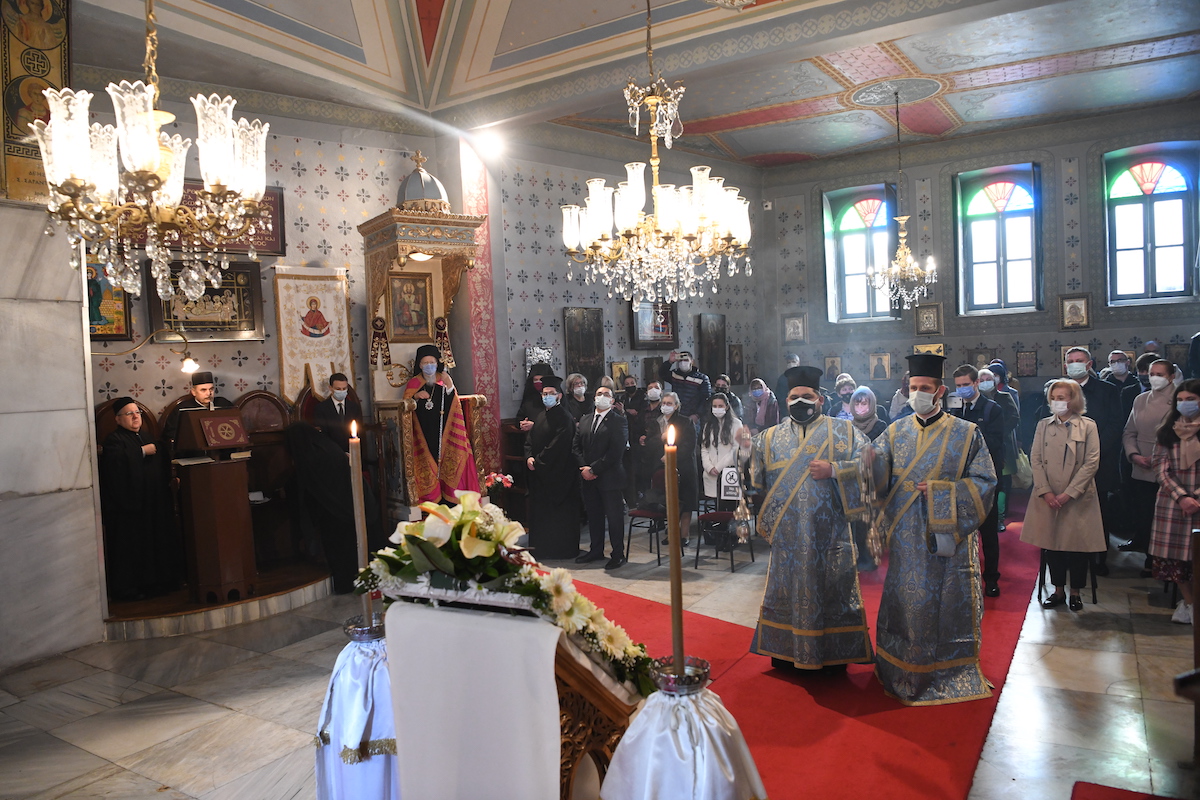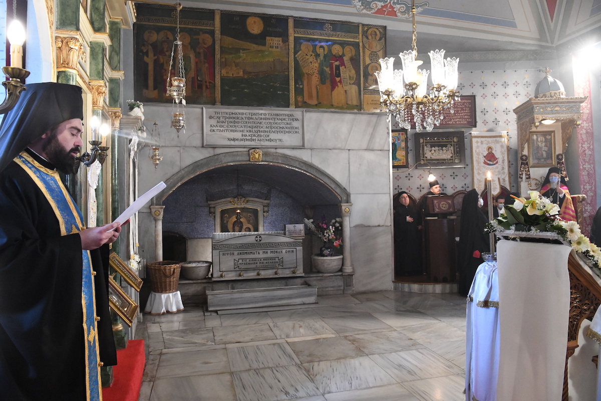 Προηγουμένως, τον Παναγιώτατο καλωσόρισε ο Θεοφιλ. Επίσκοπος Αλικαρνασσού κ. Αδριανός, ο οποίος αναφέρθηκε στο πρόσωπο της Υπεραγίας Θεοτόκου.