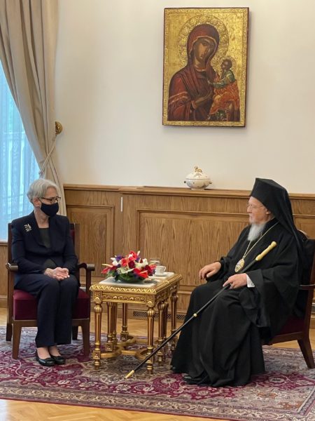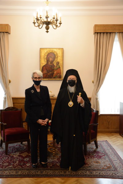 Το Οικουμενικό Πατριαρχείο επισκέφθηκε σήμερα, Σάββατο, 29 Μαΐου 2021, η Αναπληρώτρια Υπουργός Εξωτερικών των Ηνωμένων Πολιτειών Αμερικής, Εξοχ. κυρία Wendy R. Sherman, ο οποία έγινε δεκτή με ιδιαίτερη τιμή.