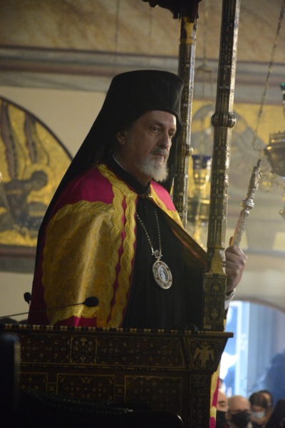 “Εορτάζει και η Μεγάλη Εκκλησία σήμερον σεμνοπρεπώς μεν λαμπρώς δε την ιεράν αυτήν Δεσποτικήν εορτήν και πανήγυριν εν μέσω περιστάσεων όλως εκτάκτων και πρωτοφανών, εν μέσω πανδημίας και λοιμικής νόσου δηλονότι, ήτις ως οι πάντες καλώς γνωρίζετε έκρουσε και τας θύρας του Μεγάλου Μοναστηρίου του Φαναρίου και προσέβαλε τον Παναγιώτατον ημών Πατέρα και Δεσπότην, τον Πατριάρχην μας, ευτυχώς με ηπιώτατα συμπτώματα, χάριτι Θεού πρωτίστως και λόγω του πλήρους εμβολιασμού εκ δευτέρου.