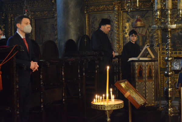 Παρέστησαν συμπροσευχόμενοι ο Σεβ. Αρχιεπίσκοπος Ανθηδώνος κ. Νεκτάριος, Επίτροπος του Παναγίου Τάφου στην Πόλη, οι Θεοφιλ. Επίσκοποι Ευδοκιάδος κ. Αμβρόσιος, Τράλλεων κ. Βενιαμίν και Δαφνουσίας κ. Σμάραγδος, οι Πρόξενοι της Ελλάδος και της Ουκρανίας στην Πόλη Εντιμ. κ.κ. Σταύρος Χριστοδουλίδης και Maksim Vdovychenko, και πλήθος πιστών.