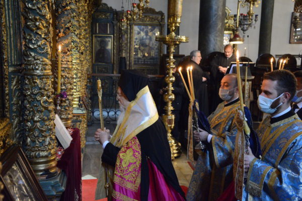 Ο Παναγιώτατος Οικουμενικός Πατριάρχης κ.κ. Βαρθολομαίος χοροστάτησε κατά την Ακολουθία του Ακαθίστου Ύμνου στον Πάνσεπτο Πατριαρχικό Ναό. Με τον Παναγιώτατο συγχοροστάτησαν οι Σεβ. Μητροπολίτες Γέρων Χαλκηδόνος κ. Εμμανουήλ, Φιλαδελφείας κ. Μελίτων, Μυριοφύτου και Περιστάσεως κ. Ειρηναίος, Μύρων κ. Χρυσόστομος, Σαράντα Εκκλησιών κ. Ανδρέας και Προύσης κ. Ιωακείμ.