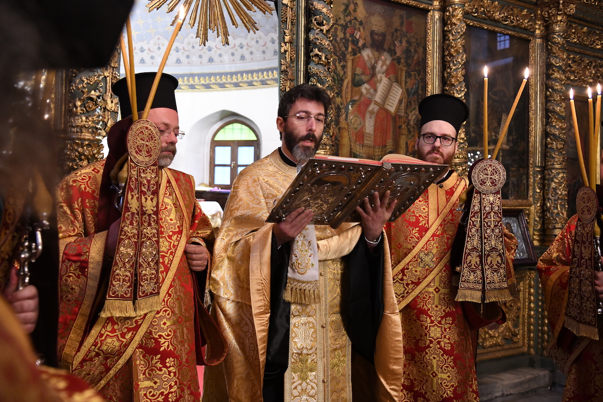 Της Θείας Λειτουργίας προεξήρχε ο Παναγιώτατος Οικουμενικός Πατριάρχης κ.κ. Βαρθολομαίος, συμπαραστατούμενος από τους Σεβ. Αρχιερείς Γέροντα Χαλκηδόνος κ. Εμμανουήλ, Γουϊνέας κ. Γεώργιο, εκ του Πατριαρχείου Αλεξανδρείας, Τσερνιχίβ και Νιζχίν κ. Ευστράτιο, εκ της Ορθοδόξου Εκκλησίας της Ουκρανίας, Μετρών καί Αθύρων κ. Δημήτριο, Καρπάθου και Κάσου κ. Αμβρόσιο, Προικοννήσου κ. Ιωσήφ, Σουηδίας κ. Κλεόπα και Αυστραλίας κ. Μακάριο. Κατά τη διάρκειά της τελέστηκαν η εις Επίσκοπον χειροτονία του εψηφισμένου Μητροπολίτου Σαράντα Εκκλησιών κ. Ανδρέα και η εις Πρεσβύτερον χειροτονία του Πανοσιολ. Ιερομονάχου κ. Θεοδώρου, στον οποίο, μετά την Απόλυση, ο Παναγιώτατος απένειμε το οφφίκιο του Μεγάλου Πρωτοσυγκέλλου.