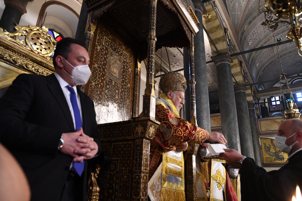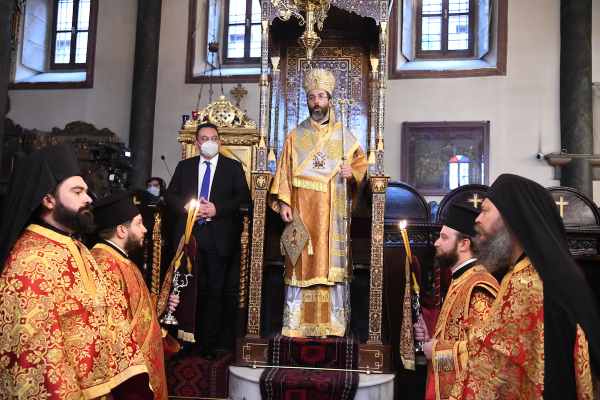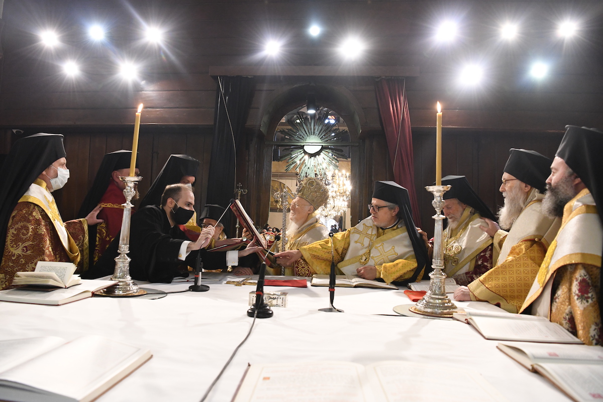 “Ο διαπρύσιος κήρυξ και ανυποχώρητος προασπιστής της ακαινοτομήτου σεσαρκωμένης Θείας αγάπης, ο πανίερος Οικουμενικός Θρονος, περιβεβλημένος εν ιματισμώ διαχρύσω πεποικιλμένω τας υπό των Οικουμενικών Συνόδων και της διαχρονικώς καθηγιασμένης εκκλησιαστικής παραδόσεως ιεροκανονικάς του προνομίας, παρά τας όποιας απέλπιδας και καταδικασμένας εις αποτυχίαν αμφισβητησεις των, τας υπό ομοδόξων ατυχώς πως επ’ εσχάτων διατυπουμένας, διακηρύττει εν αδιαπτώτω θυσιαστική κενώσει την σωτηριώδη Ορθόδοξον αλήθειαν, και δη κατά την τελευταίαν τριακονταετίαν της πεπνυμένης και θεοστηρίκτου πατριαρχίας Σας, Παναγιώτατε, μετά φωνής ισχυράς και προφητικής, εν μέσω ενός κόσμου απορουμένου εκ της εντεινομένης απωλείας υπαρξιακού νοήματος και σαφούς προσανατολισμού, προσφάτως δε και εξ αιτίας της ενσκηψάσης φοβεράς απειλής του κορωνοιού, η οποία καθείλε πανθομολογουμένως, και δη κατά τρόπον ηχηρόν ως εν συσσεισμώ, τας ατομοκρατικάς ψευδαισθήσεις και ευδαιμονιστικάς βεβαιότητας του συγχρόνου «ανθρωποθεού».